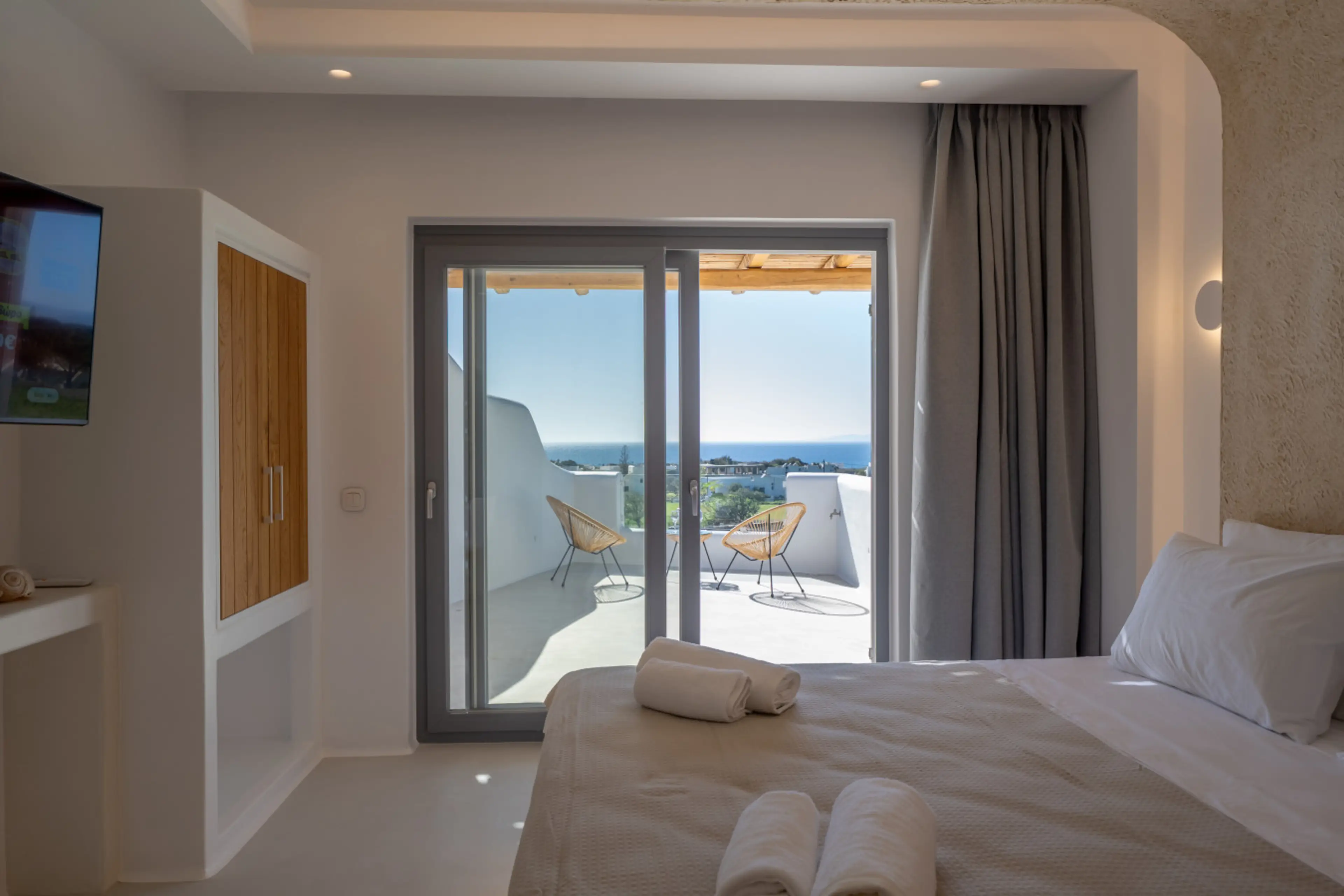 Our Superior Double Sea View Room is a cozy and elegant hideaway for couples looking to relax, recharge, and soak up the beauty of Naxos. Designed in clean Cycladic style, the room combines simplicity with comfort, creating a calm and inviting space. Step out onto your private balcony and take in t...
